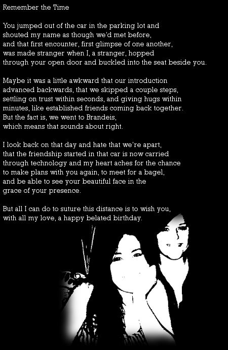 Posted in poetry Remember the Time Image• Posted on April 21, 2013May 24, 2013 by SHE'S IN PRISON Share this: Click to share on X (Opens in new window) X Click to share on Facebook (Opens in new window) Facebook Click to email a link to a friend (Opens in new window) Email Click to share on Pinterest (Opens in new window) Pinterest Click to print (Opens in new window) Print More Click to share on Tumblr (Opens in new window) Tumblr Click to share on LinkedIn (Opens in new window) LinkedIn Click to share on Reddit (Opens in new window) Reddit Click to share on Pocket (Opens in new window) Pocket Like Loading... Author: SHE'S IN PRISON Poetry and music. View All Posts