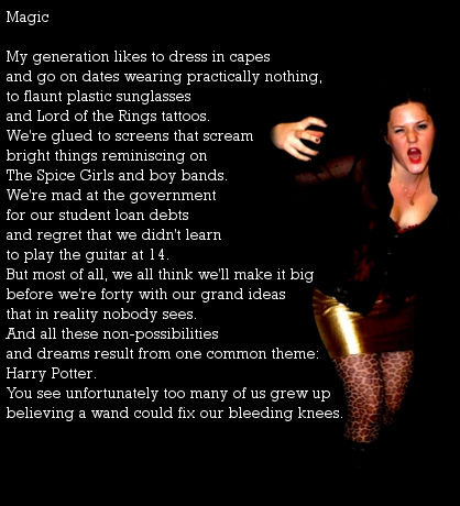 Posted in poetry Magic Image• Posted on April 25, 2013May 24, 2013 by SHE'S IN PRISON Share this: Click to share on X (Opens in new window) X Click to share on Facebook (Opens in new window) Facebook Click to email a link to a friend (Opens in new window) Email Click to share on Pinterest (Opens in new window) Pinterest Click to print (Opens in new window) Print More Click to share on Tumblr (Opens in new window) Tumblr Click to share on LinkedIn (Opens in new window) LinkedIn Click to share on Reddit (Opens in new window) Reddit Click to share on Pocket (Opens in new window) Pocket Like Loading... Author: SHE'S IN PRISON Poetry and music. View All Posts