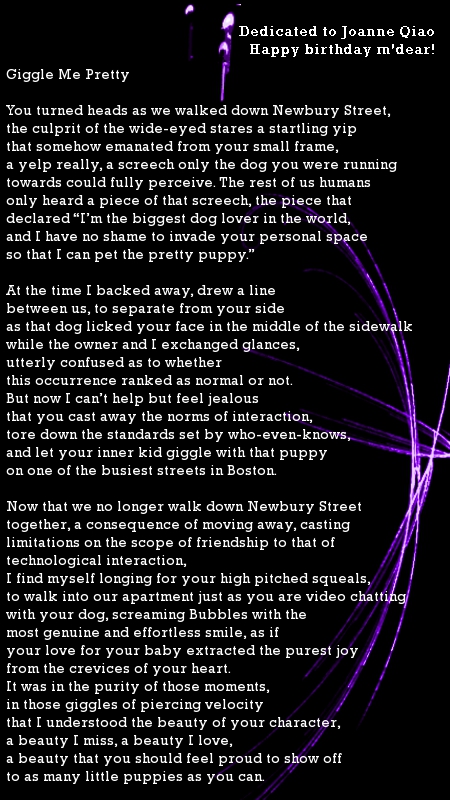 Posted in poetry Giggle Me Pretty Image• Posted on May 29, 2013 by SHE'S IN PRISON Share this: Click to share on X (Opens in new window) X Click to share on Facebook (Opens in new window) Facebook Click to email a link to a friend (Opens in new window) Email Click to share on Pinterest (Opens in new window) Pinterest Click to print (Opens in new window) Print More Click to share on Tumblr (Opens in new window) Tumblr Click to share on LinkedIn (Opens in new window) LinkedIn Click to share on Reddit (Opens in new window) Reddit Click to share on Pocket (Opens in new window) Pocket Like Loading... Author: SHE'S IN PRISON Poetry and music. View All Posts
