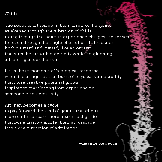 Posted in Music, poetry, writing Chills Image• Posted on August 7, 2013 by SHE'S IN PRISON Share this: Click to share on X (Opens in new window) X Click to share on Facebook (Opens in new window) Facebook Click to email a link to a friend (Opens in new window) Email Click to share on Pinterest (Opens in new window) Pinterest Click to print (Opens in new window) Print More Click to share on Tumblr (Opens in new window) Tumblr Click to share on LinkedIn (Opens in new window) LinkedIn Click to share on Reddit (Opens in new window) Reddit Click to share on Pocket (Opens in new window) Pocket Like Loading... Author: SHE'S IN PRISON Poetry and music. View All Posts