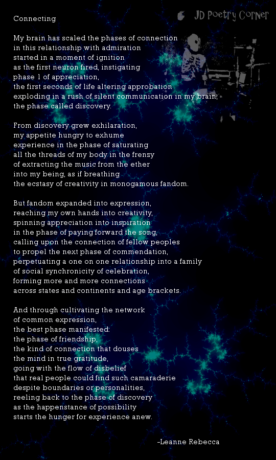 ConnectingFind the archives of all my Josh Dun Poetry Corner poems HERE. Also, I’ve just started a new Facebook page for She’s in Prison. Check it out/like/share for writing prompts, poetry updates, and to share your own work!