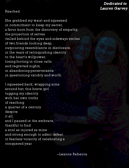 Posted in art, poetry, writing Reached Image• Posted on January 22, 2014 by SHE'S IN PRISON Share this: Click to share on X (Opens in new window) X Click to share on Facebook (Opens in new window) Facebook Click to email a link to a friend (Opens in new window) Email Click to share on Pinterest (Opens in new window) Pinterest Click to print (Opens in new window) Print More Click to share on Tumblr (Opens in new window) Tumblr Click to share on LinkedIn (Opens in new window) LinkedIn Click to share on Reddit (Opens in new window) Reddit Click to share on Pocket (Opens in new window) Pocket Like Loading... Author: SHE'S IN PRISON Poetry and music. View All Posts