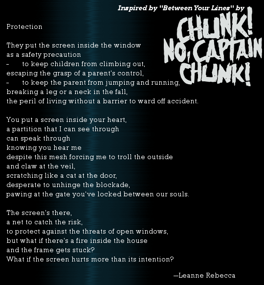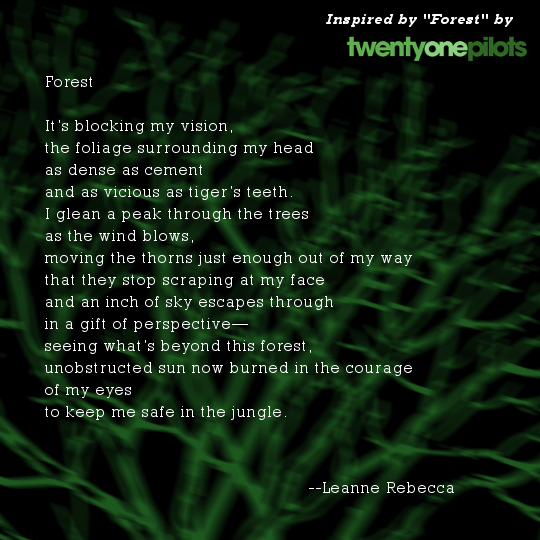 Today was about obsession. I listened to the same song on repeat all day long. I’m not kidding. This isn’t an exaggeration. I’m not so secretly crushing on the band’s frontman and I can’t get enough of it. The song, “In the End” by Black Veil Brides, is a metal anthem that begs for attention. There’s a reason the video has 49 MILLION views on YouTube. Today I added a couple more hundred to that count. After a day like that, trapped in the grips of passion, the outpouring of emotion, the crying of an entire generation summed up in about 4 minutes, I needed to write a poem. I NEEDED to write a poem. I needed my voice heard too.