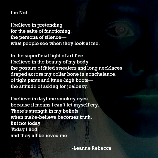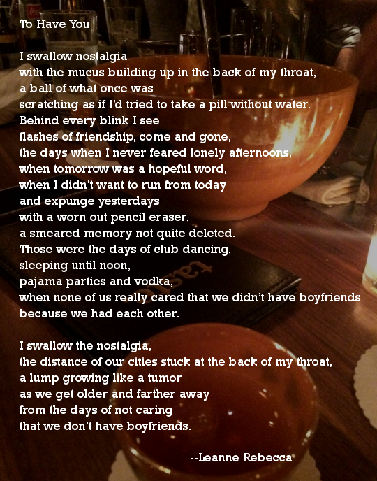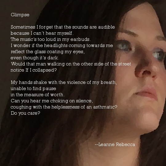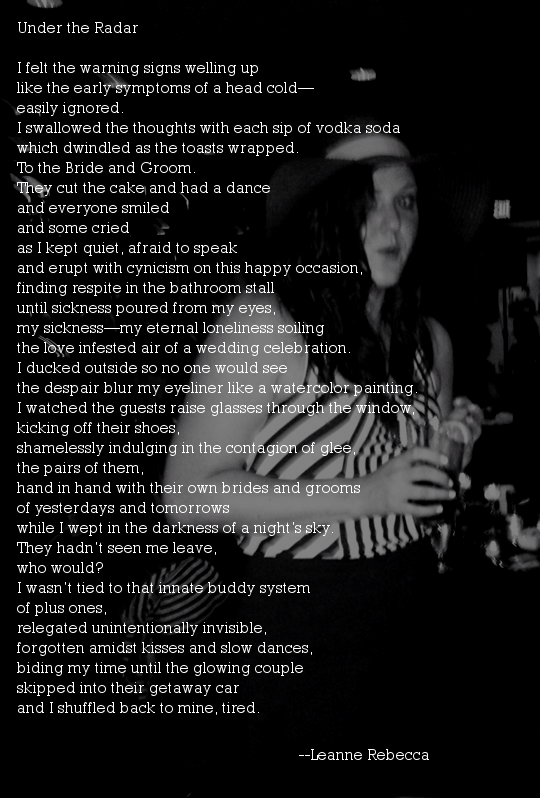 This poem came out of nowhere. I was taking a walk, imagining stories in my head, and it just hit me in the face.
