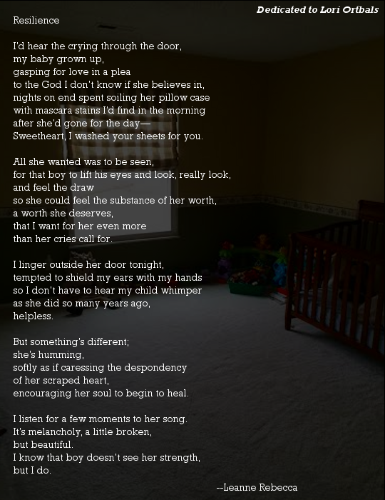 This poem is dedicated to my mom, Lori Ortbals. The title was her idea.