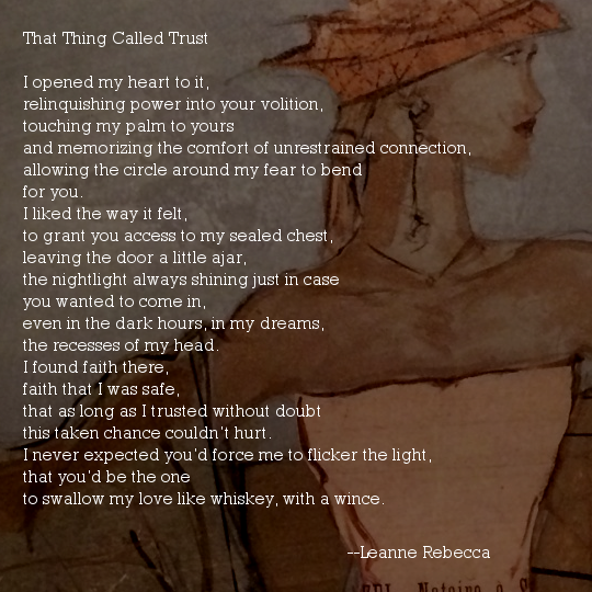 The funny thing about writing is that it’s impermanent. It’s just thoughts we cast on paper or in word processors, easily deleted or lost and impossible to recover in word for word accuracy. I wrote one version of “Trapdoor” last summer but today when I looked at it, I hated it, judging every line until before I knew it, I’d written an entirely new version. The only line that remains from the original is the first one.