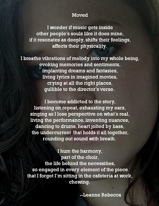 If you’ve never tried writing under the influence of a song, I highly recommend it. Turn the volume up, hit repeat, and lose your soul for a minute as you let the vibrancy of the melody steal your physical body. Don’t just listen, but absorb. Internalize the lyrics and drum your fingers with the beat as you let your imagination run. What do you see if you close your eyes? A memory?