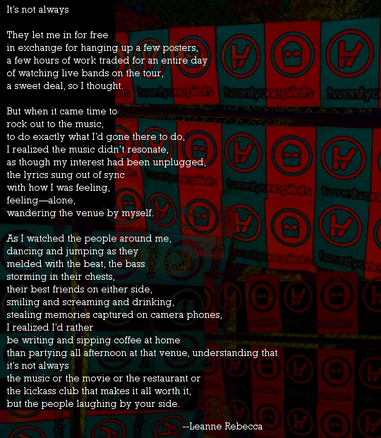 It's not always***Note: Thank you to Fueled by Ramen for letting me help out at the Vans Warped Tour. Regardless of what this poem suggests, I did appreciate it and had a good time! Kyle it was nice to meet you 🙂 |-/