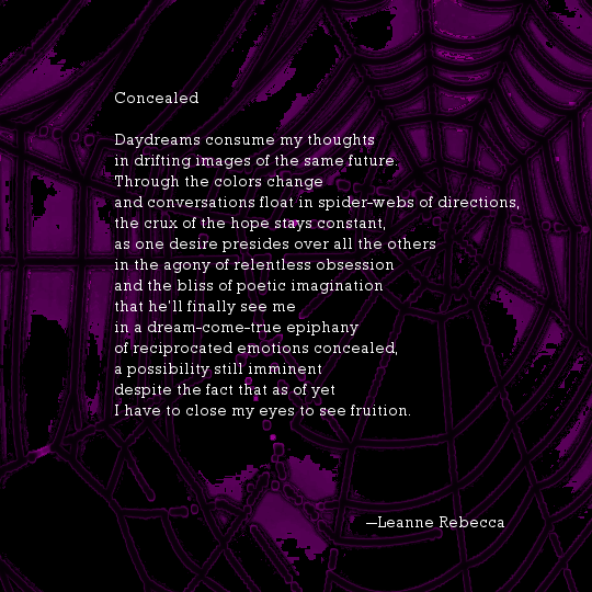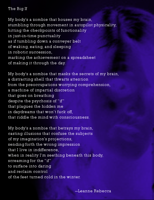 This poem came out of nowhere. I was taking a walk, imagining stories in my head, and it just hit me in the face.