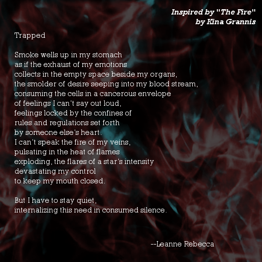 I’ve admired the work of Kina Grannis for awhile now. I love the edge of her voice and let’s be honest, she’s totally gorgeous. Today’s poem is inspired by Kina’s new song “The Fire” from her upcoming album Elements. I’m stoked to hear more of her original music and of course see what new poems she inspires me to write. But until the release of the album, I implore you to check out some of her covers on YouTube and give a listen to “The Fire” as well.