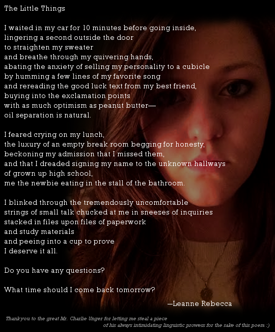 In second grade I thought I was going to grow up to become a librarian. In fourth grade I saw a documentary about a cave diving marine biologist and decided I’d become a scientist, a dream that lasted until my senior year in high school when I realized I didn’t in fact like studying biology at all. Never through all those years did I think I’d grow up to be a poet. It’s a passion I fell into through taking a chance, one that took coaxing to start, but one I will never regret.