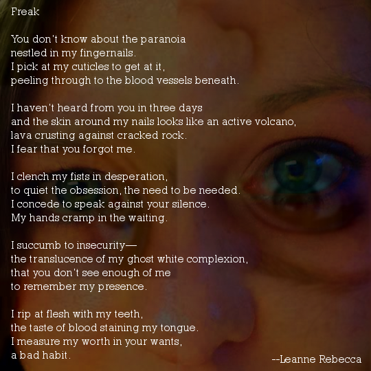This poem came out of nowhere. I was taking a walk, imagining stories in my head, and it just hit me in the face.